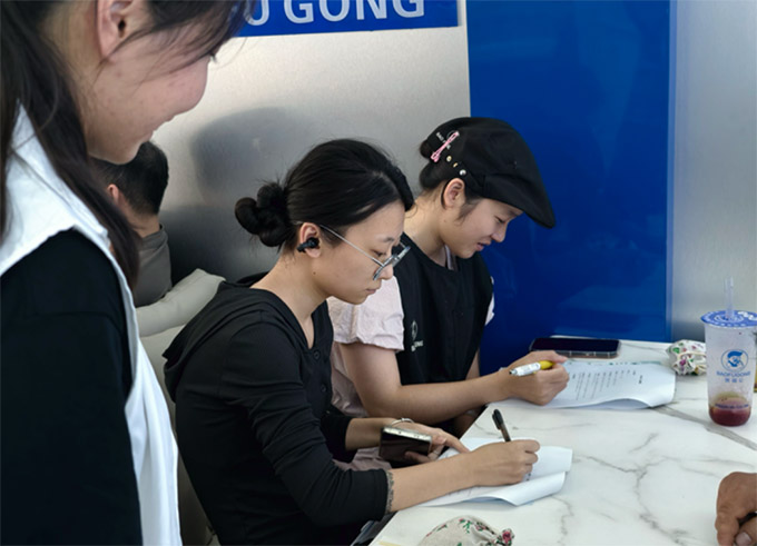 圖為實(shí)踐隊(duì)出發(fā)前學(xué)習(xí)藥物警戒、慢性病用藥指導(dǎo)等專業(yè)知識(shí)