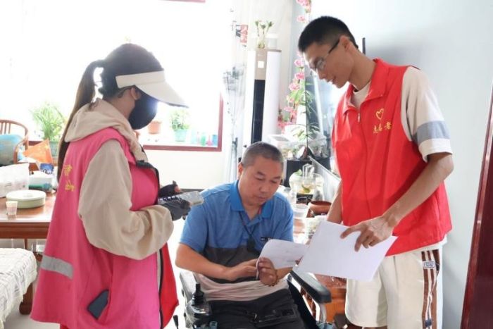 圖為實(shí)踐團(tuán)隊(duì)員與第三師圖木舒克市167社區(qū)訪談居民對(duì)電信詐騙的了解度。李雨蒙 供圖
