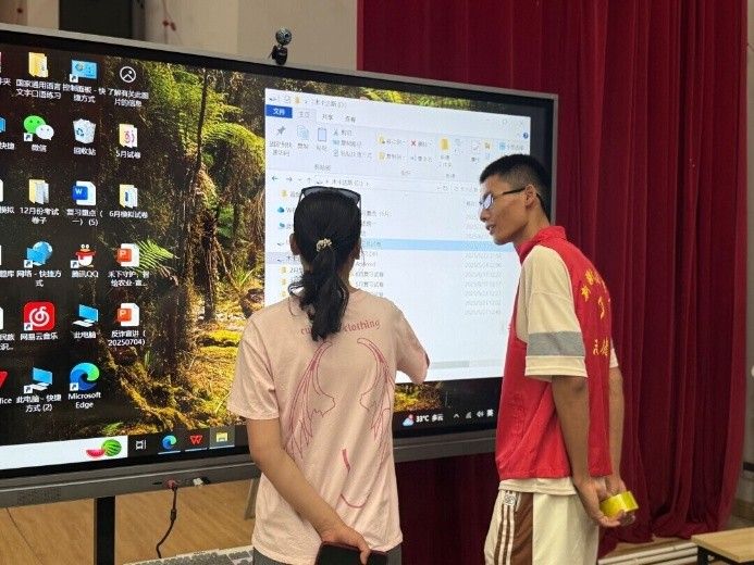 此圖為實(shí)踐團(tuán)隊(duì)員向居民播放反詐宣傳視頻。曹渭荻供圖